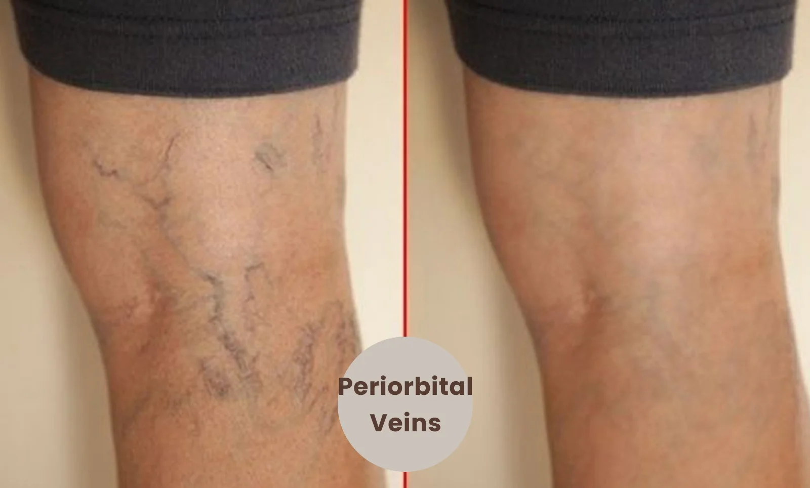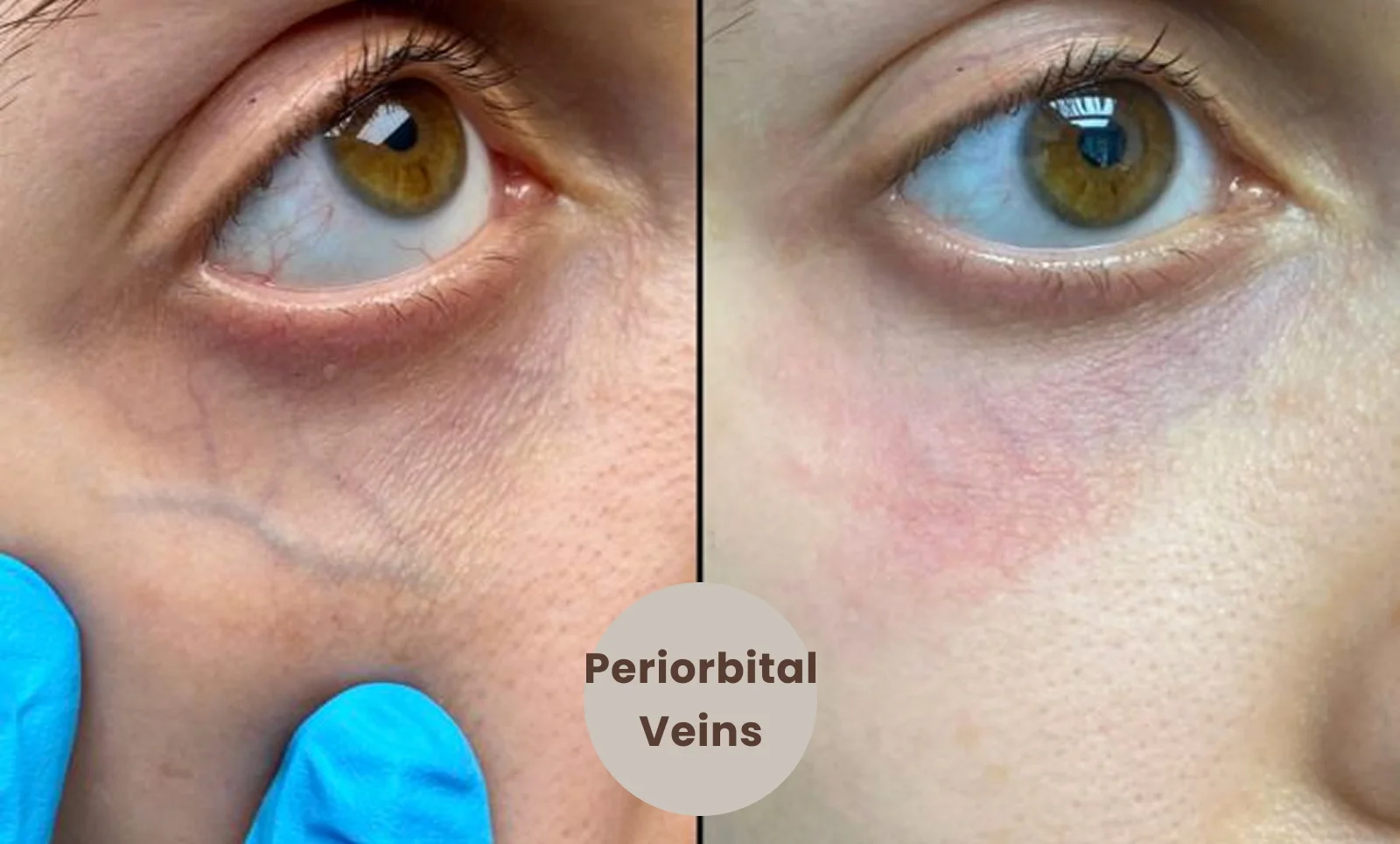 Periorbital veins are the blood vessels beneath the eyes that can become more prominent, giving a tired or aged appearance. These veins often become visible due to factors like ageing, skin thinning or genetics. While periorbital veins are a natural occurrence, they can make the under-eye area look darker or older.