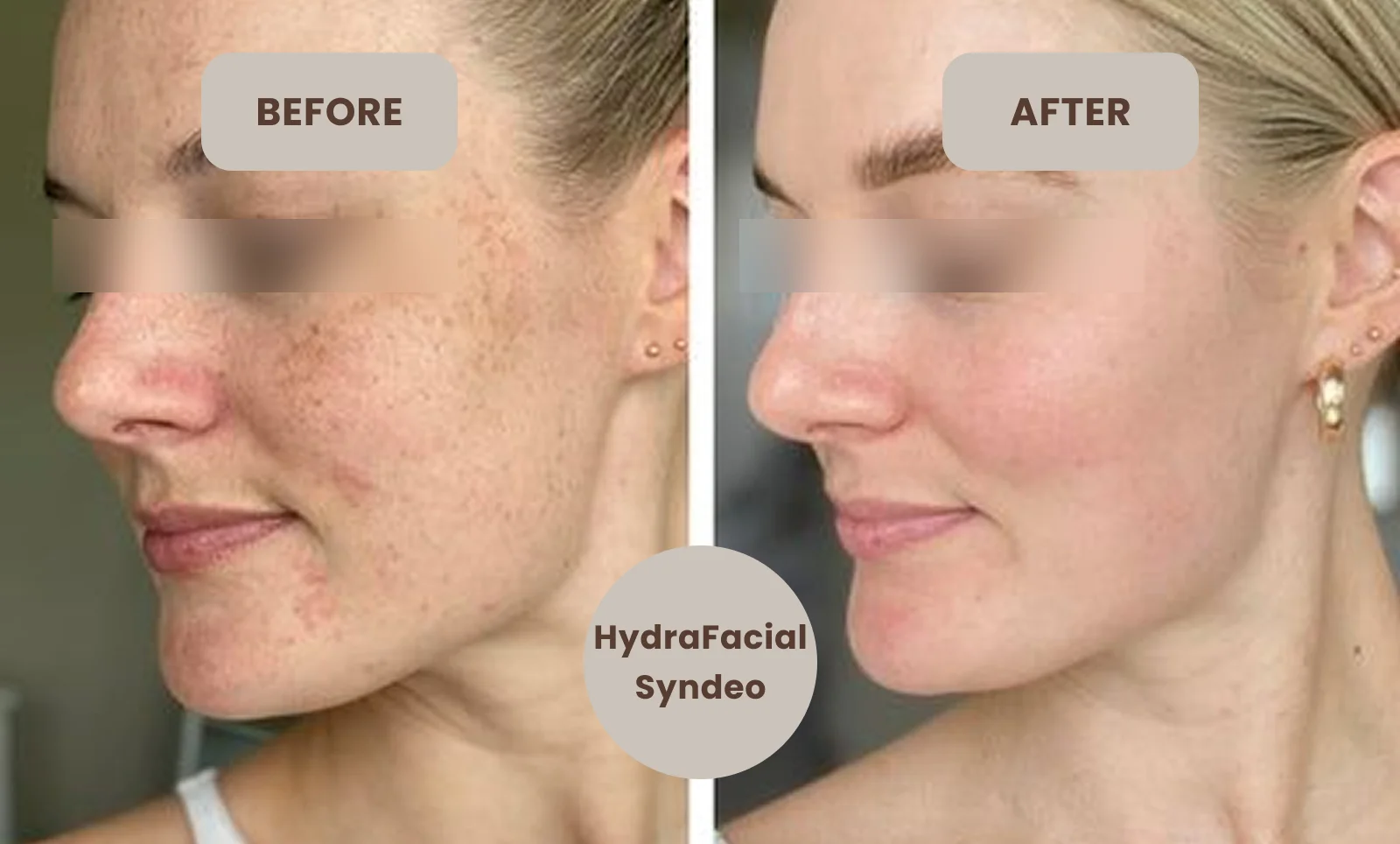 The HydraFacial Syndeo® facial follows three key steps: deep cleansing and exfoliation with a gentle peel, painless suction to extract impurities and intense hydration using customised serums for your skin’s specific needs. The entire procedure is comfortable, taking approximately 30 minutes.