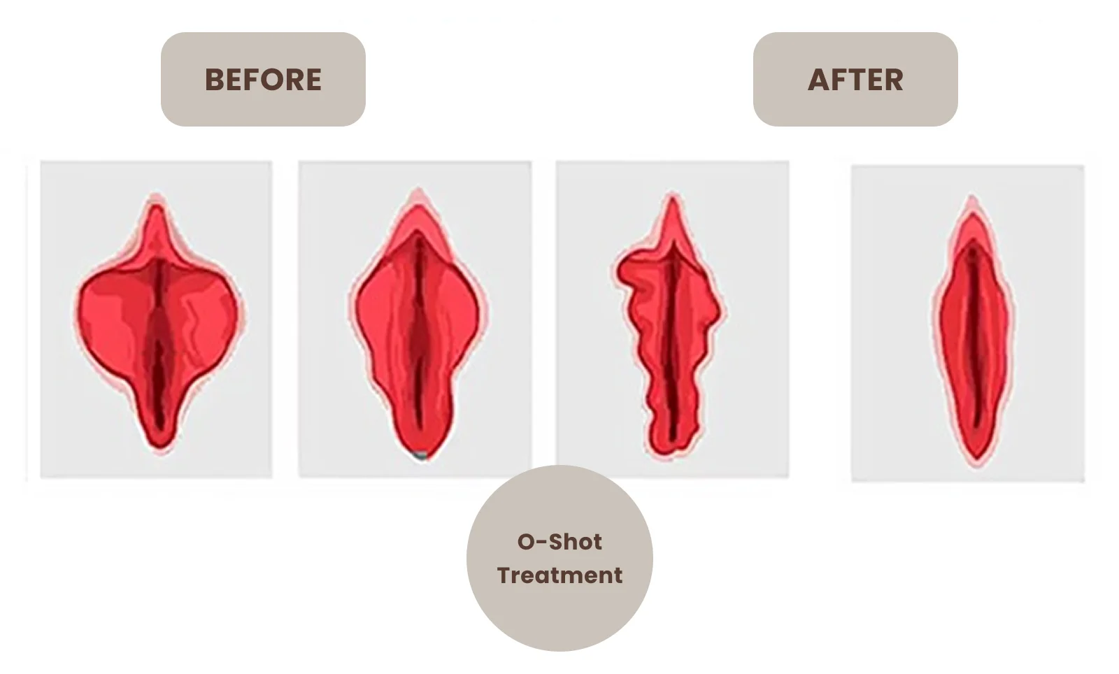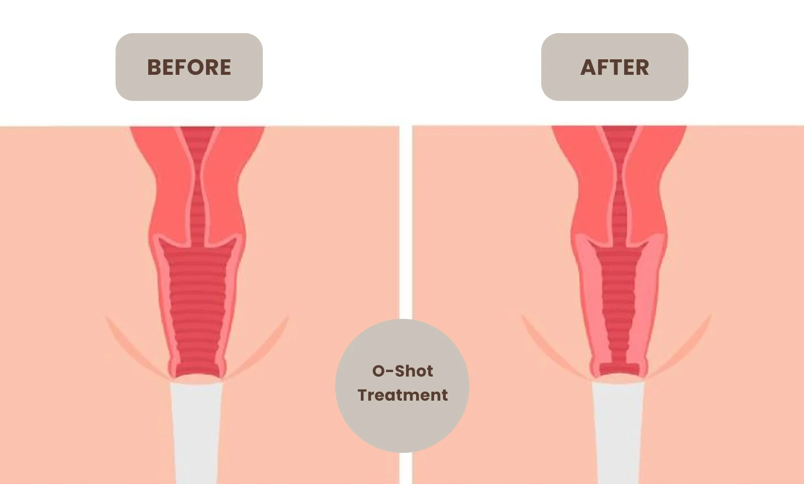 O Shot is one of the most innovative intimate wellness treatments that uses Platelet Rich Plasma (PRP) derived from the patient’s own blood. A small amount of the client’s own blood is drawn and processed with precision extract PRP. This plasma contains growth factors that enhance vascularisation (blood supply), tissue repair and increased sensitivity. Unlike other surgical or hormonal options for vaginal rejuvenation, O Shot is safe, natural and non-invasive, which effectively addresses bladder control, sexual health, and intimacy concerns.