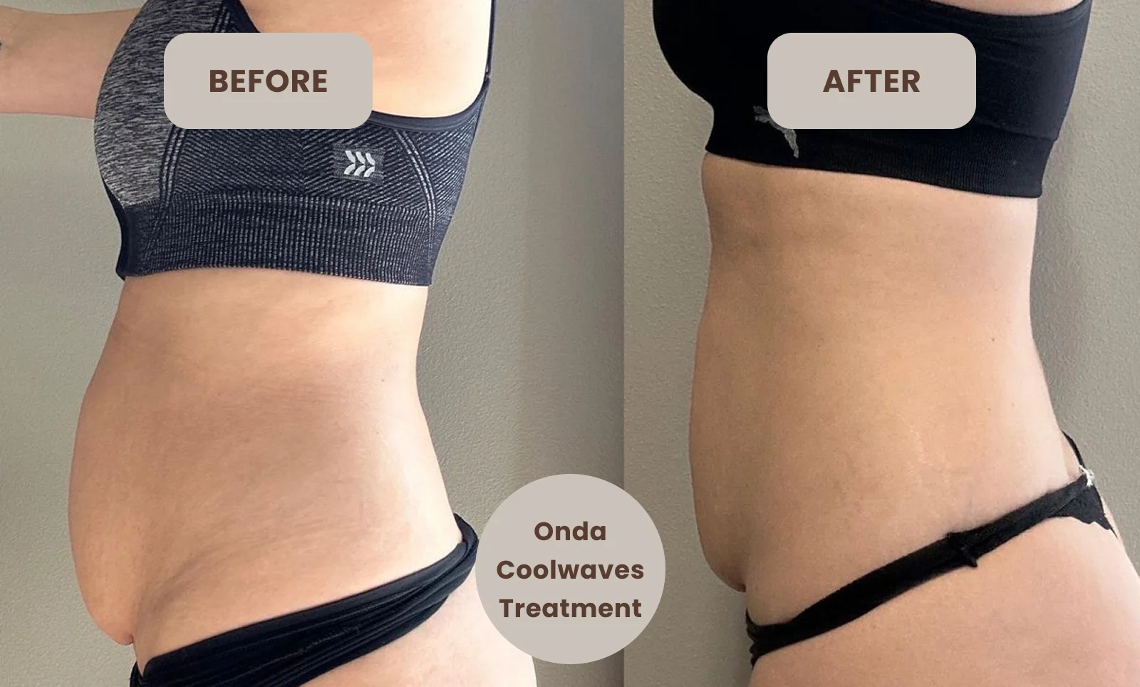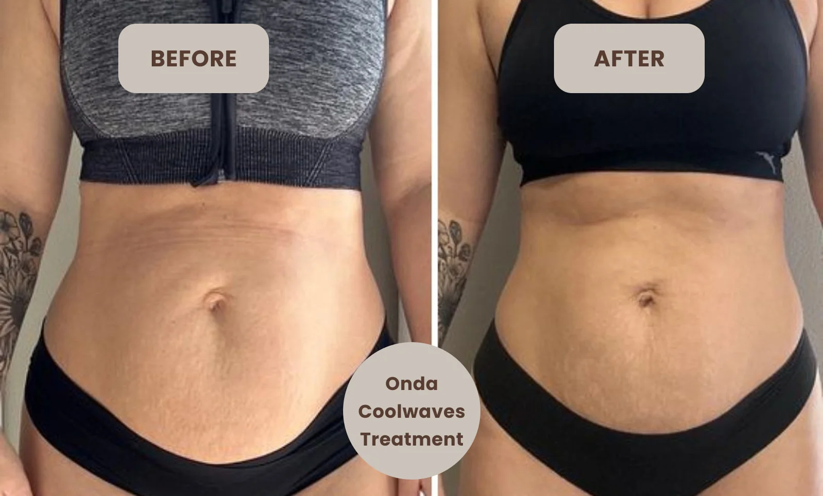 Onda Coolwaves delivers impressive results, with many clients noticing visible improvements after just a few sessions. The treatment targets fat cells, shrinking them to reveal a smoother, more toned appearance. Onda Coolwaves before-and-after results show significant reductions in body fat and a firmer, more sculpted physique. Most clients experience a noticeable change within a few weeks, with optimal results achieved after 3–4 sessions.