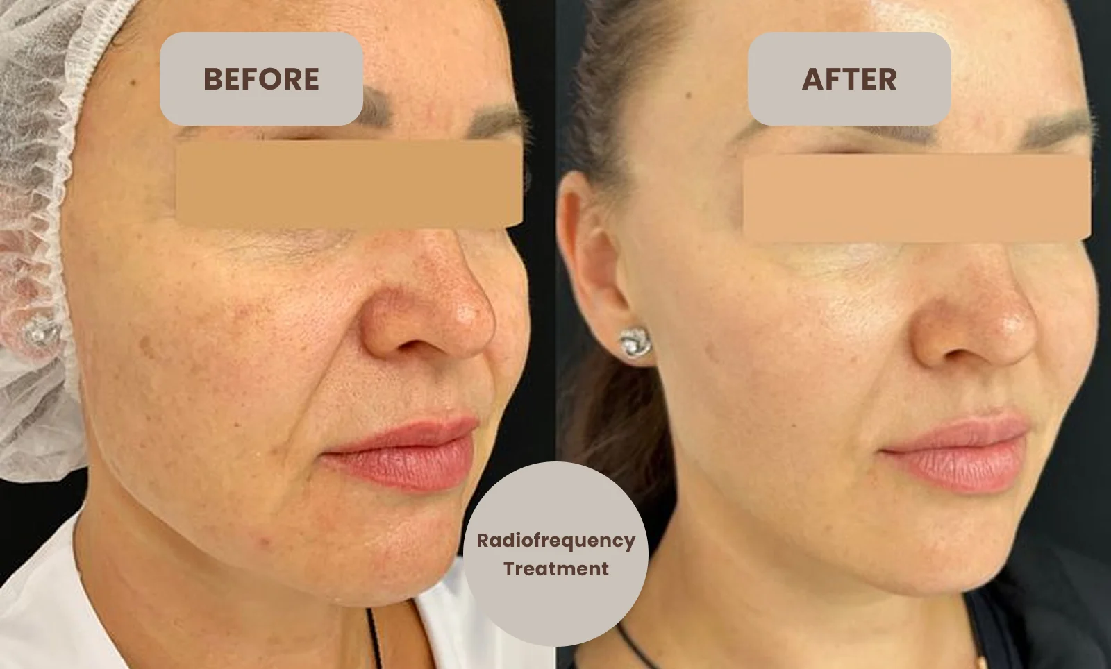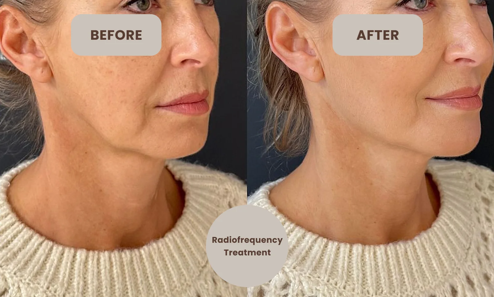 Before the radiofrequency procedure, clients experience sagging, loose skin and visible wrinkles that can make them appear older. With just a few sessions of radiofrequency treatment, the skin becomes visibly firmer, smoother and lifted. Results include a more youthful contour with enhanced skin tone and texture, offering a natural, refreshed appearance. Many patients have observed a remarkable improvement in skin tightness within weeks of treatment.