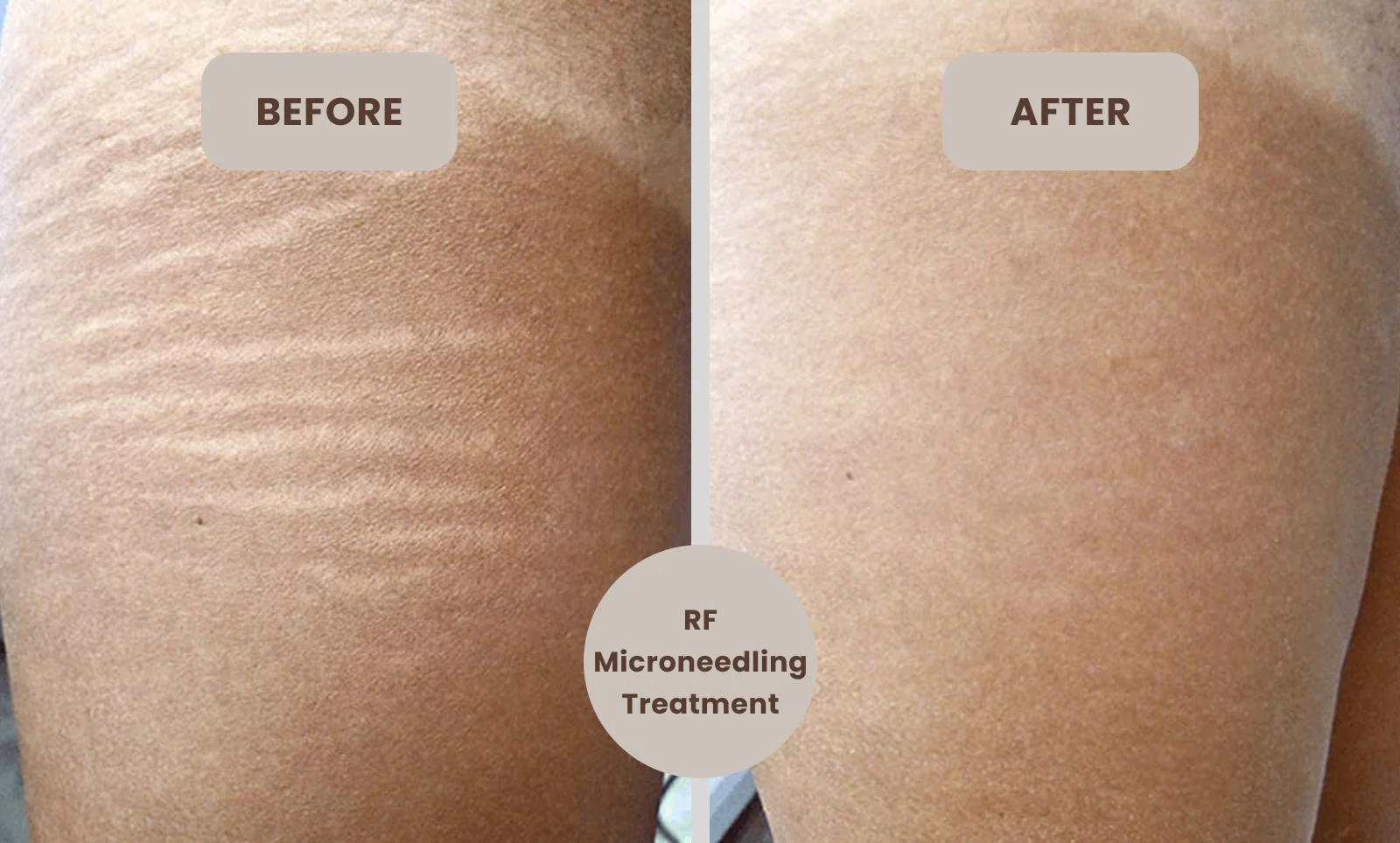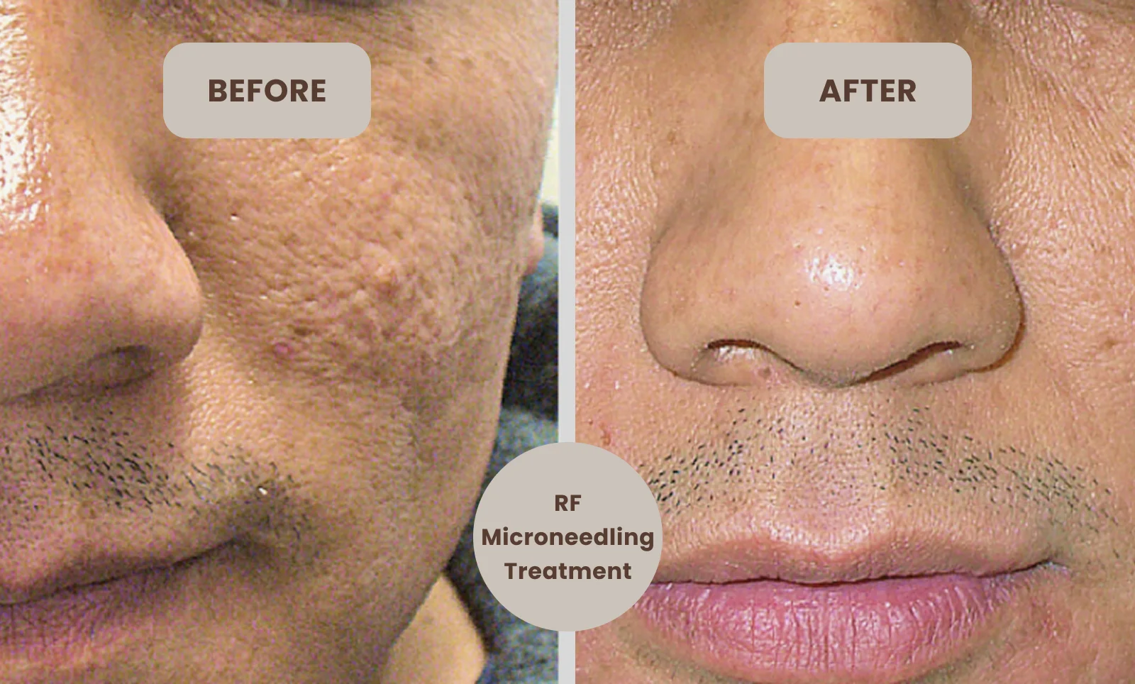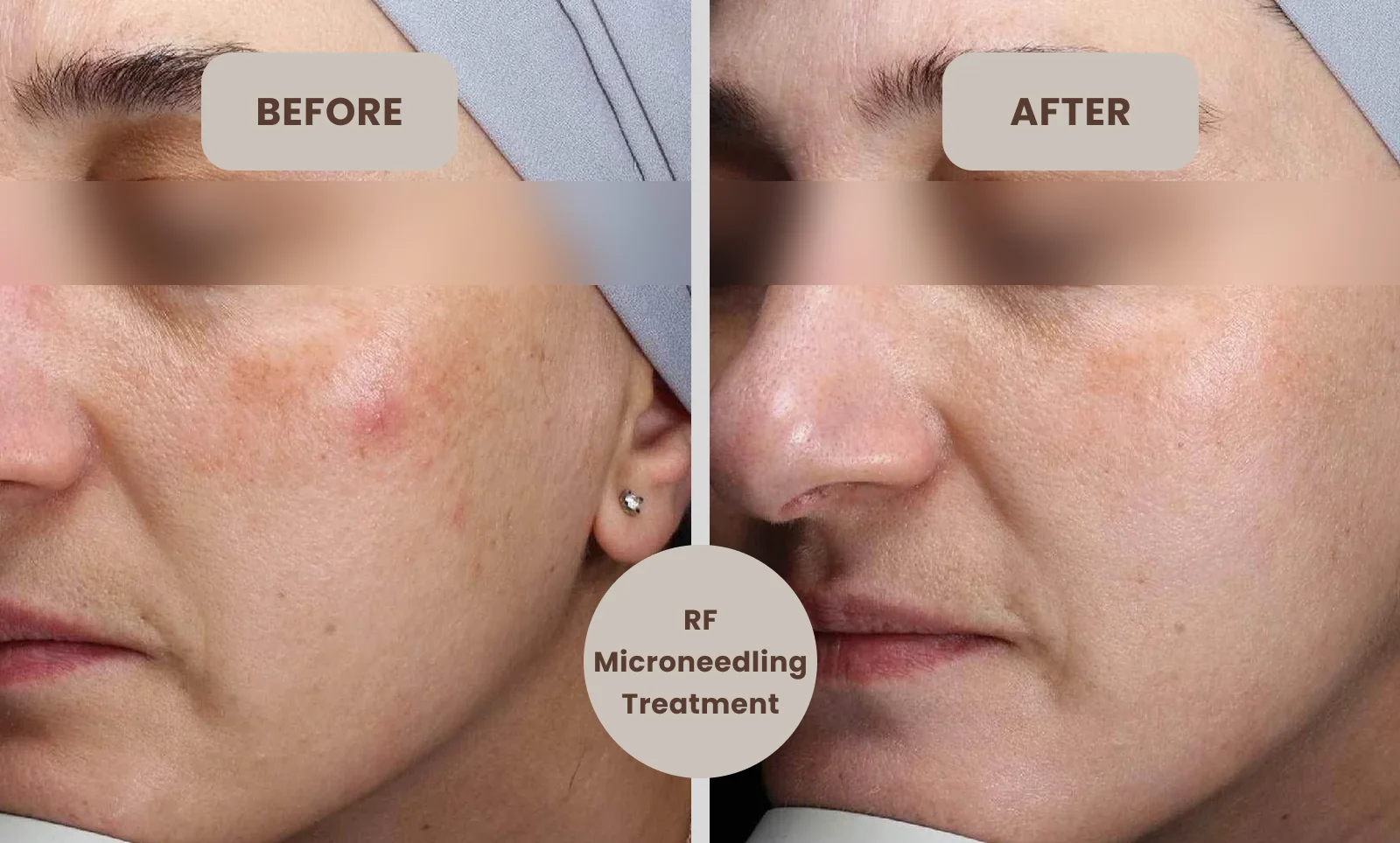 The effects of RF Microneedling are noticeable after a few sessions, with most clients seeing improvements in skin texture and tone within 3 to 6 months. The skin becomes smoother, firmer and more youthful. Before and after photos often show significant reductions in wrinkles, acne scars and sagging skin. Clients frequently report a noticeable glow and tightened skin after treatment. Results can last up to a year, with recommended touch-ups for maintenance.