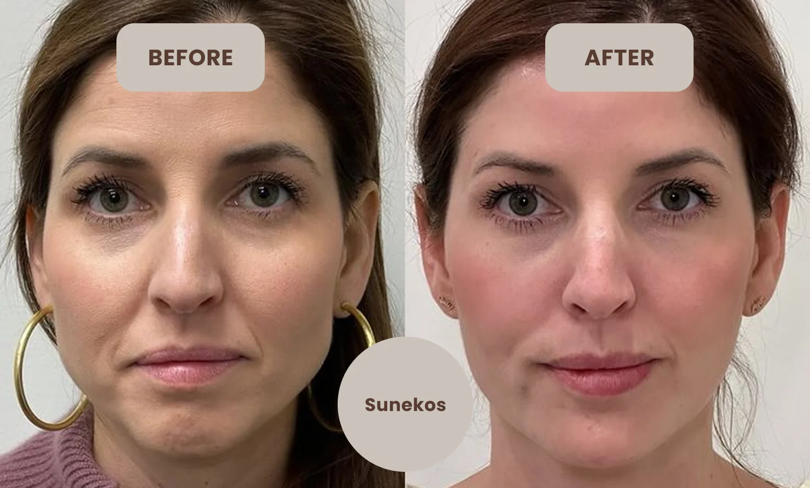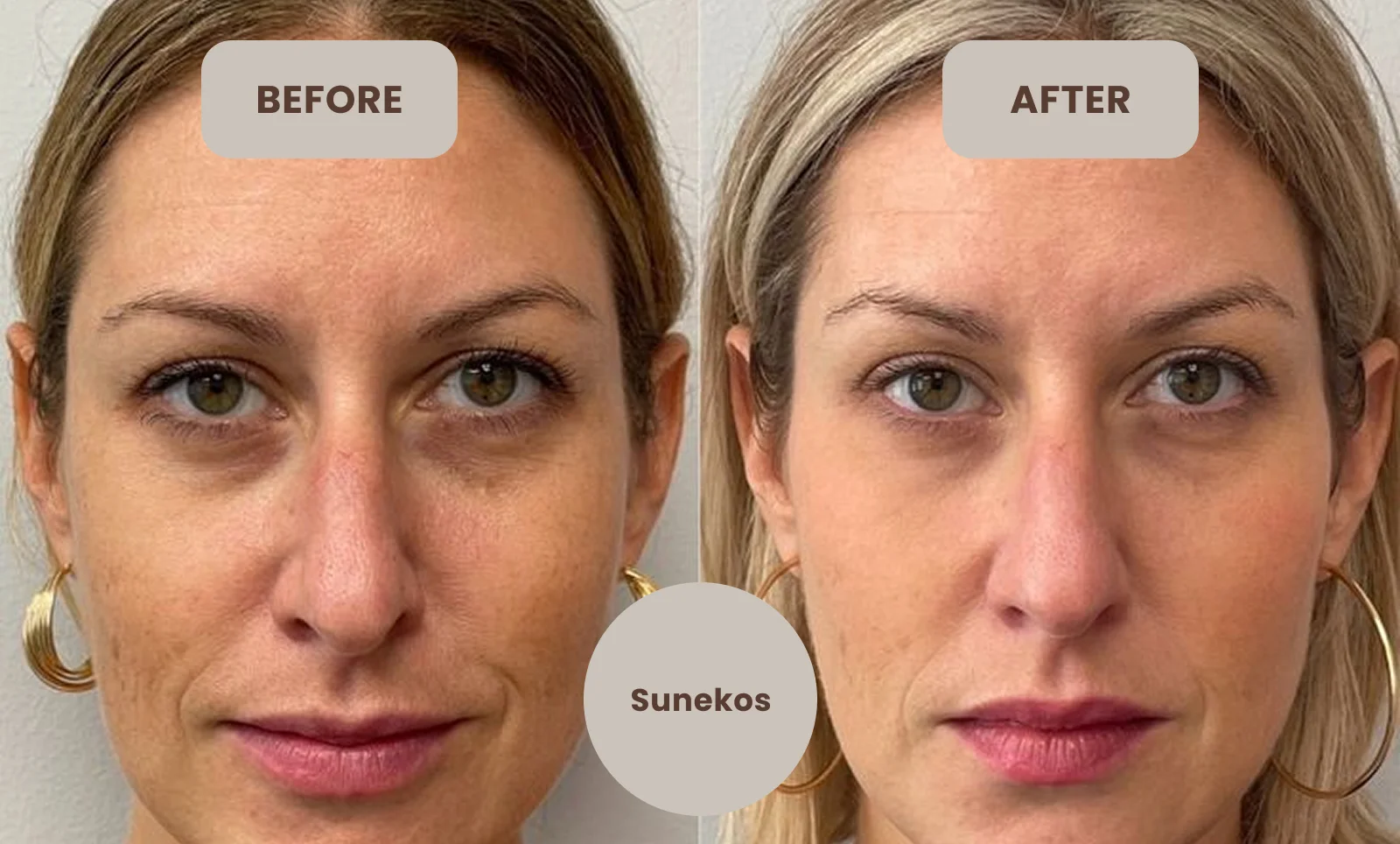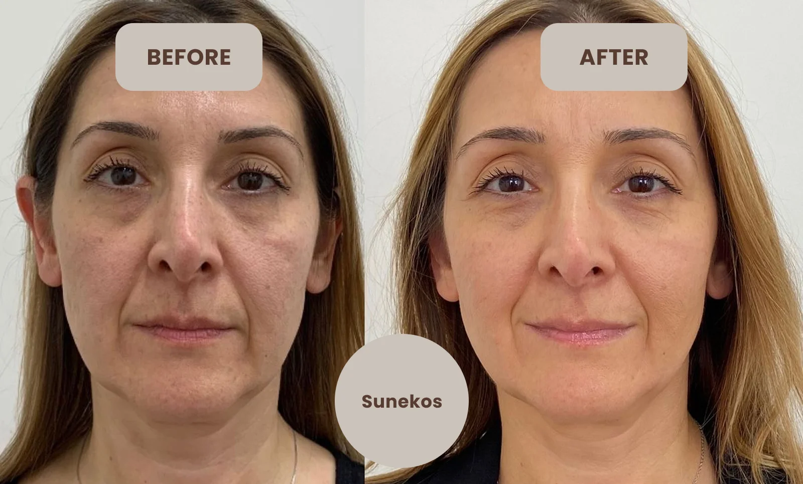 Suneko under-eye treatment helps restore youthful skin by improving texture, hydration and elasticity. Clients experience noticeable reductions in puffiness, fine lines and dark circles. The results are natural and subtle, with no added puffiness, providing a refreshed, awake appearance that lasts for months. Most patients see results within a few weeks, with benefits continuing to improve over time.