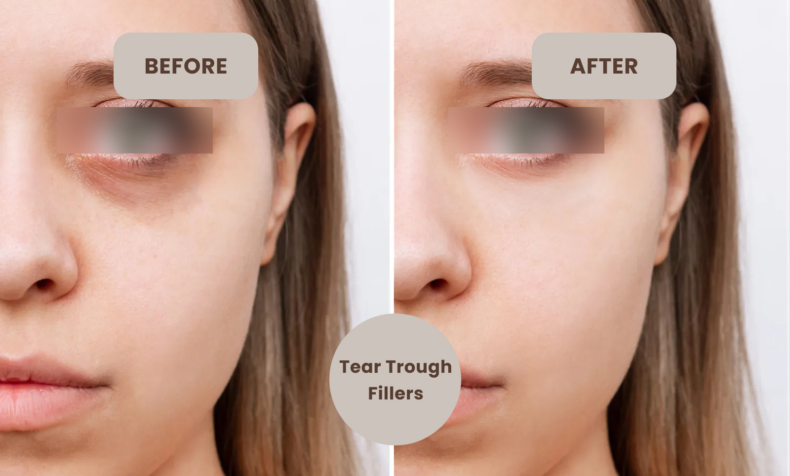 Before undergoing tear trough treatment, clients faced skin laxity, dark circles, sunken and tired-looking eyes and an uneven transition. After the treatment, patients often report that mild improvement is visible immediately after the first session; however, the full effect of tear trough fillers typically becomes apparent within two weeks, once any initial swelling has subsided and the filler has fully settled. Results can last for up to 12 months, depending on individual factors such as metabolism, the body’s natural breakdown of hyaluronic acid, and the quality of post-treatment care.
